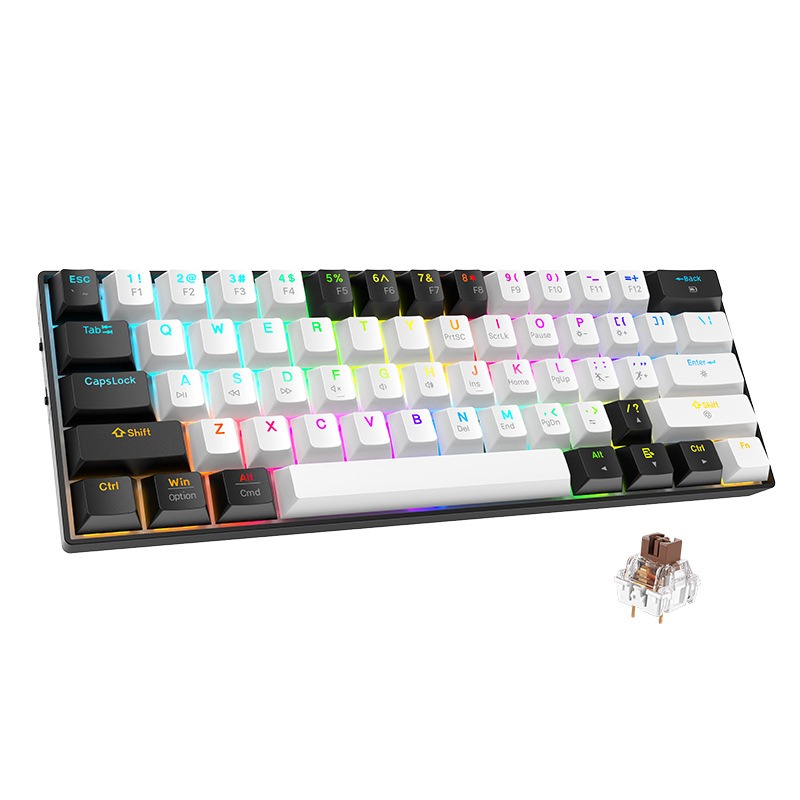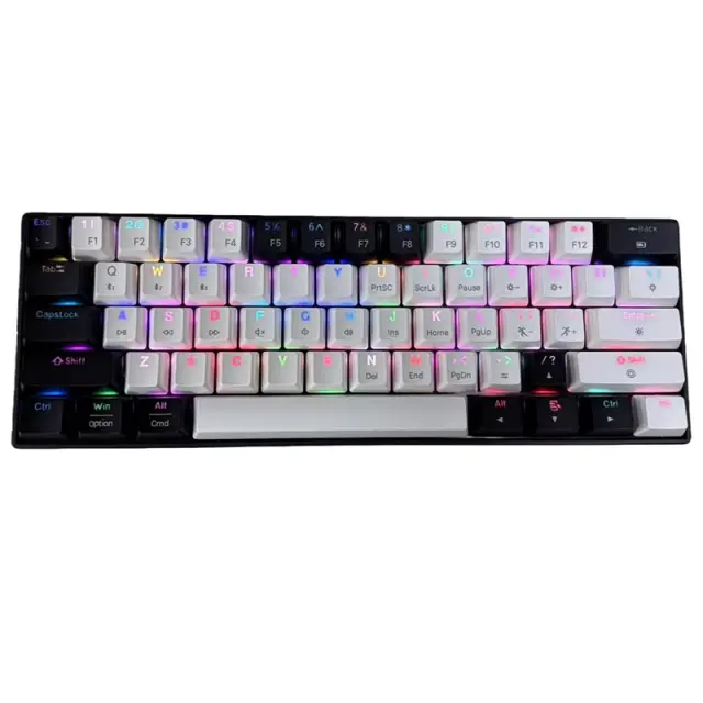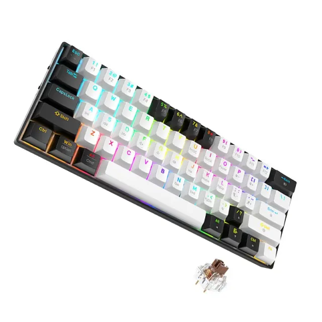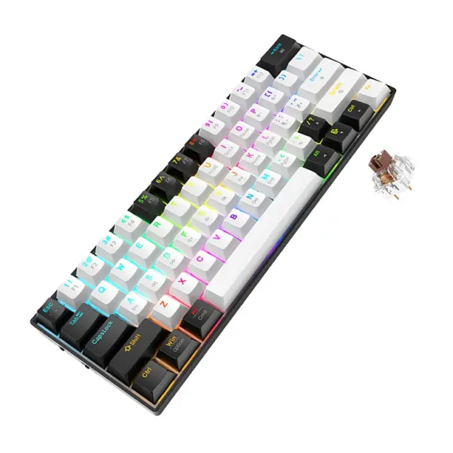 Vsestranska povezljivost s tremi načini: Izkusite neprimerljivo vsestranskost s to 61-tipkovno mehansko tipkovnico s povezljivostjo s tremi načini. Brezhibno preklapljajte med žičnimi USB, 2,4G brezžičnimi in Bluetooth povezavami, da ustrezajo kateri koli napravi ali okolju. Zanesljiva 2,4G brezžična povezava ponuja nizko latenco za igranje iger, medtem ko Bluetooth omogoča enostavno seznanjanje z več napravami, kot so tablični računalniki in pametni telefoni. Žična USB povezava zagotavlja stabilno in dosledno povezavo za kritične naloge. Ta tipkovnica je kot nalašč za uporabnike, ki potrebujejo prilagodljivost in priročnost pri svojih vhodnih napravah, ne glede na to, ali so doma, v pisarni ali na poti. Uživajte v svobodi povezovanja s katero koli napravo brez težav z več kabli ali adapterji. 61-tipkovna postavitev prihrani prostor, ne da bi pri tem žrtvovali funkcionalnost, zaradi česar je idealna izbira za kompaktne delovne postaje.