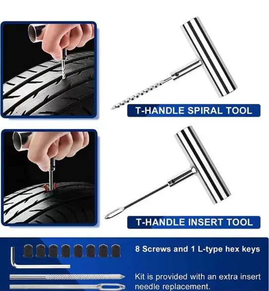 62-delni komplet za popravilo pnevmatik, popravilo predrtih pnevmatik, obliž vtikača avtomobilskega motornega kolesa MultiColor
