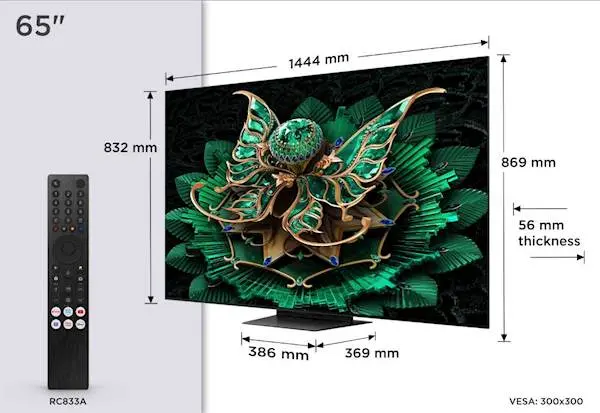 TCL 65C71K je QD-Mini LED televizor s 4K HDR PREMIUM tehnologijo in kar 1008 conami lokalnega zatemnjevanja, kar omogoča izjemen kontrast in natančno osvetlitev. Zaslon s 144Hz Motion Clarity Pro, Crystglow HVA panelom in podporo za Dolby Vision IQ zagotavlja gladko, realistično sliko. Vgrajen zvočni sistem Bang & Olufsen 2.2 kanala s 60W skupaj z Dolby Atmos ustvari izkušnjo domačega kina. Povezljivost z HDMI 2.1, Google TV, pametnim mikrofonom in naprednim AiPQ Pro procesorjem dopolnjujejo vrhunski paket.