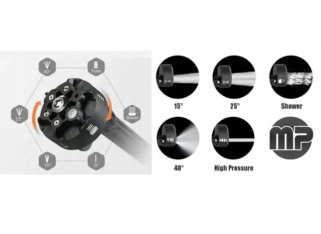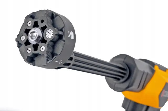 Visokotlačni čistilnik je opremljen z vrtljivo šobo, zahvaljujoč kateri lahko izberemo pravi tok vode, glede na to, ali želimo pomiti kocko, avto ali zaliti vrt.