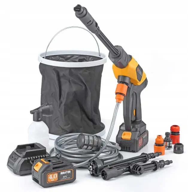 Ta 6v1 akumulatorski visokotlačni čistilnik je zmogljiv, prenosljiv in vsestranski pripomoček za čiščenje doma, vozil, vrtov in druge uporabe na prostem. Z močnim motorjem, ki omogoča tlak do 60 bar, in dvema 4Ah baterijama, vam omogoča brezhibno čiščenje brez potrebe po priključku na elektriko.