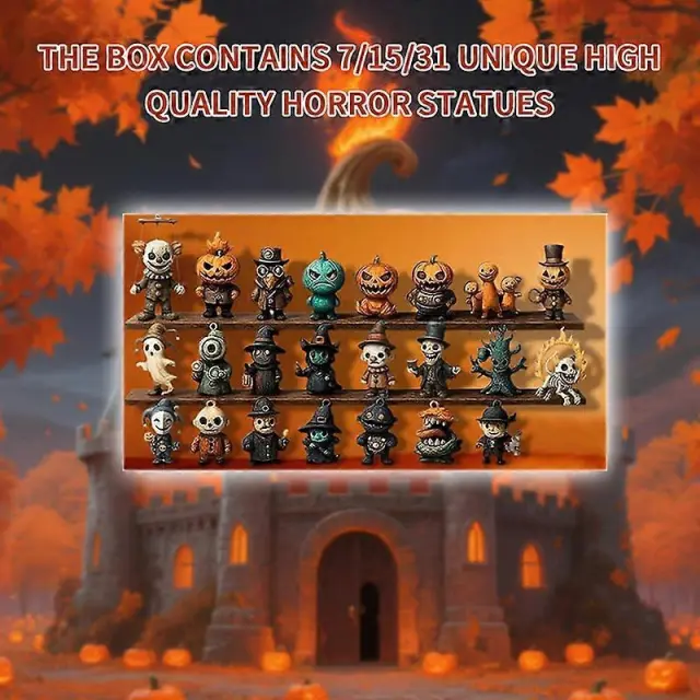 7/15/31 Nights Of Fright Halloween adventni koledar 2025, odštevalnik s figuricami grozljivk, mini okraski