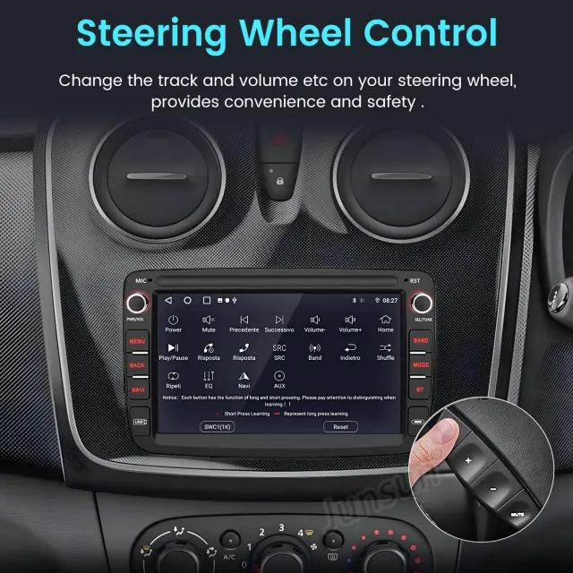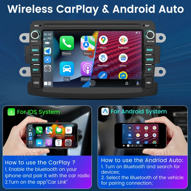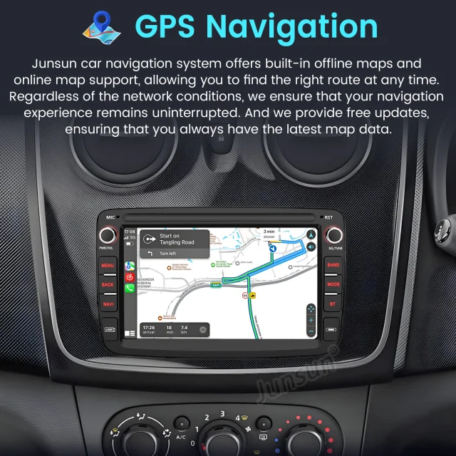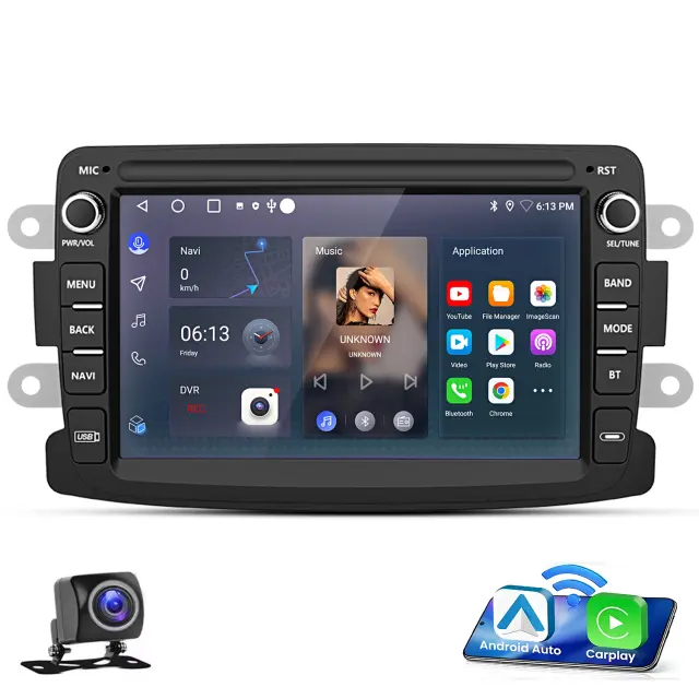 Naša spletna trgovina ponuja izjemno 7" Avtoradio z Android 13 in CarPlay, ki je posebej zasnovan za lastnike Renault Dacia Duster, Sandero in Lada. Ta avtoradio je popoln upgrade vašega trenutnega avdio sistema. Z CarPlay možnostjo lahko povežete svoj iPhone in uporabljate različne aplikacije, kot so Apple Maps in Spotify, preprosto z enim dotikom. Vgrajeni GPS sistem zagotavlja natančno navigacijo na vaši poti, dokler Wi-Fi povezava omogoča hitri dostop do spletne vsebine. Bluetooth podpora zagotavlja brezžično povezavo s vašim telefonom, kar olajša predvajanje glasbe in opravljanje poklicev.