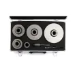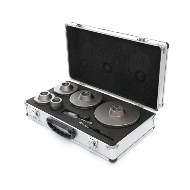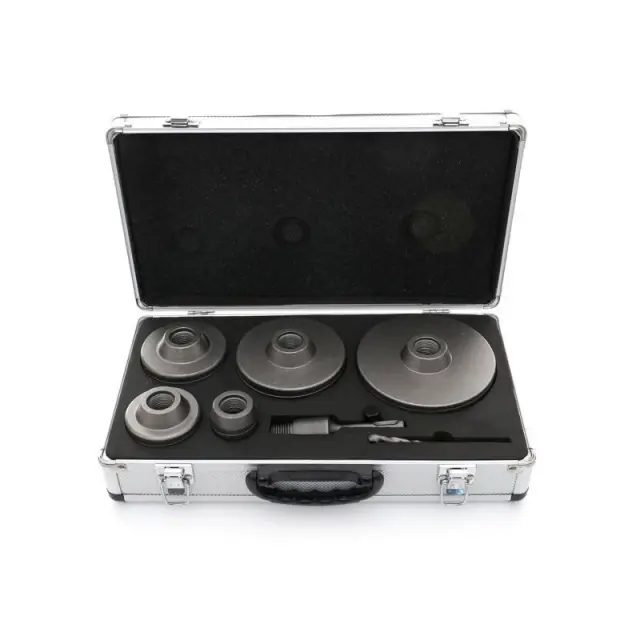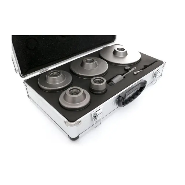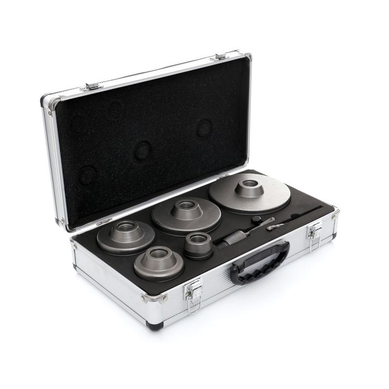 V kompletu so žage za luknje v naslednjih velikostih: 40, 65, 80, 100, 125 mm. Namestite na sistem SDS Plus 110 mm. Pilotni sveder 110 mm.