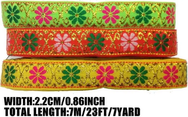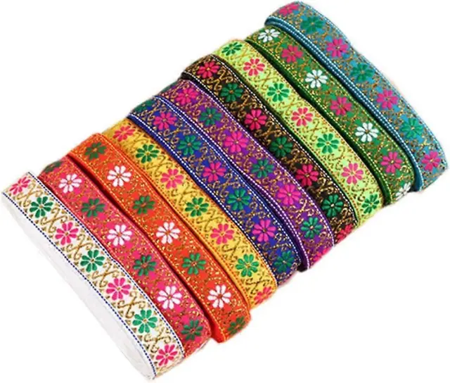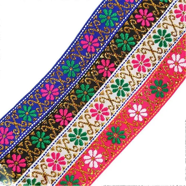 7-metrski žakardni trak, vezen s cvetličnimi marjeticami, kovinsko vintage tkano blago (nebeško modra)