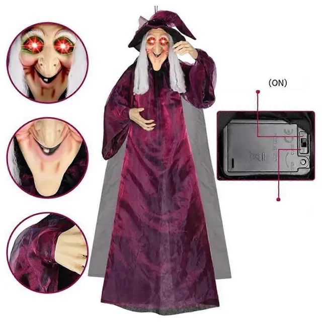 71 Viseča dekoracija čarovnice s svetlečimi očmi in funkcijo zvočne aktivacije Animirana govoreča čarovnica