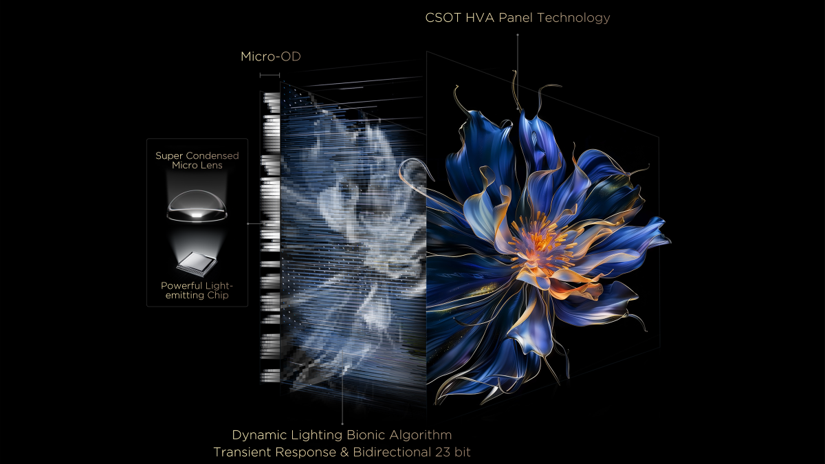 Tehnologija TCL All-domain Halo Control zajema celotno pot od generiranja svetlobe do ustvarjanja slike, pri čemer združuje visoko učinkovite svetilne čipe in notranje razvito tehnologijo leč v kombinaciji z Micro-OD, algoritmi za nadzor svetlobe in senc ter vrhunsko tehnologijo plošč HVA. Z natančnim nadzorom svetlobe na sistemski ravni učinkovito rešuje težave z učinkom sijaja in zagotavlja vrhunsko izkušnjo gledanja.