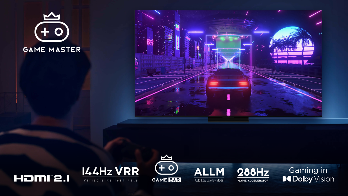 Za igralce iger je odzivni televizor enako pomemben kot dobra slika. Serija C7K je posebej opremljena s podporo HDMI 2.1, ALLM, 144 Hz VRR in 120 Hz VRR, zato boste seveda izkusili najmanjšo zakasnitev in najboljše nastavitve slike za igranje iger. Poleg tega je opremljen s funkcijo VRR (Variable Refresh Rate), ki vključuje tudi odobritev FreeSync Premium Pro ter Game Bar in pospeševalnik iger 288 Hz.