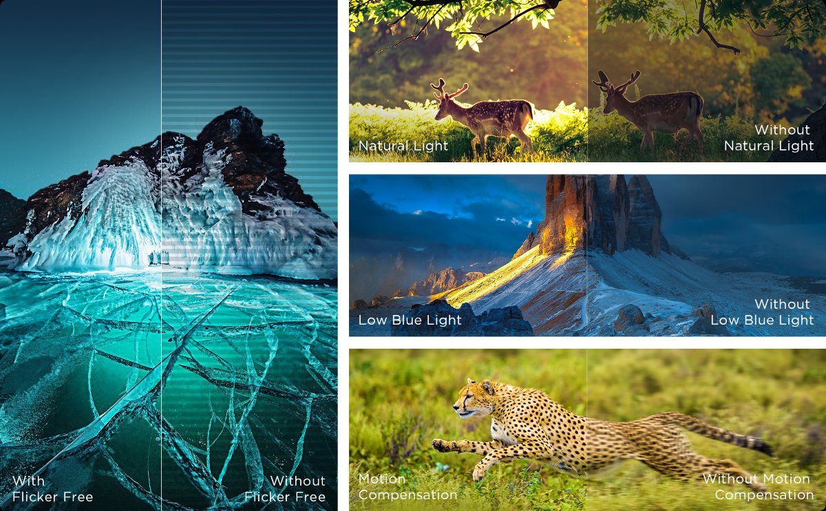 Z vrsto tehnologij za razbremenitev oči, kot so nizka stopnja modre svetlobe, optimizacija naravne svetlobe, brez utripanja itd. C7K še naprej varuje zdravje vaših oči. Vse, kar morate storiti, je, da uživate v filmih in igrah.