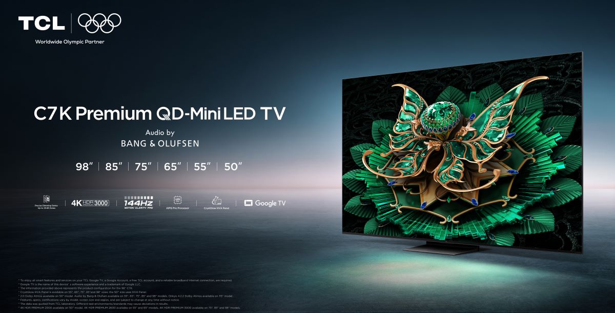 TCL Premium C7K QD-Mini LED z do 2880 zatemnitvenimi območji* je vizualna mojstrovina, ki ponuja osupljivo živahne slike z realističnimi barvami in izjemno visokim kontrastnim razmerjem. Ima tudi večjo največjo svetlost, širšo barvno lestvico, večjo velikost zaslona in daljšo življenjsko dobo, zaradi česar velja za vodilno tehnologijo zaslonov.