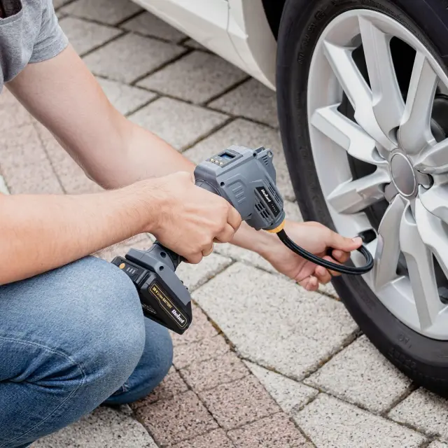 Prenosna zasnova: Zaradi kompaktnosti in akumulatorske napajanja je kompresor izjemno prenosljiv in primeren za uporabo v različnih okoljih, bodisi doma bodisi na terenu.