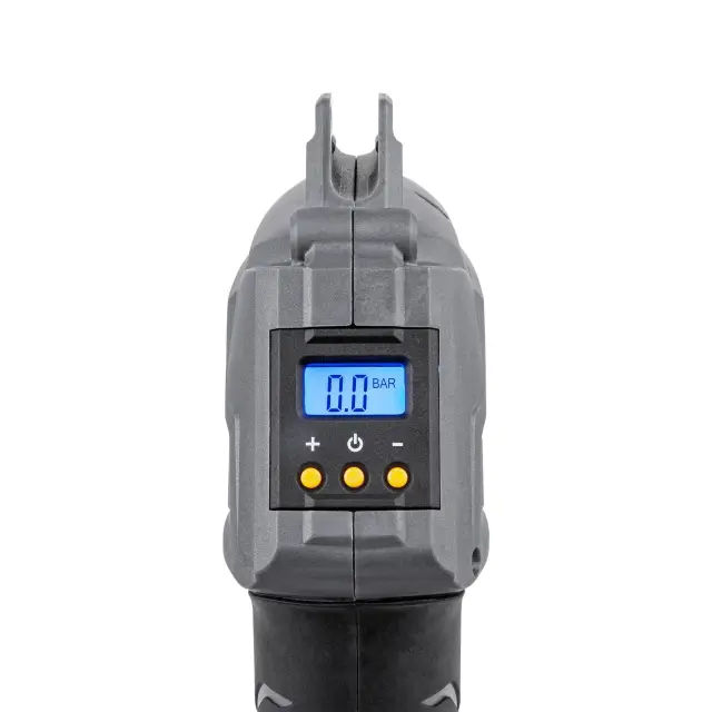 Črpanje je možno na dva načina: ročno, tako da držite stikalo, dokler ni dosežen želeni tlak, ali avtomatsko, z nastavitvijo ustreznega tlaka s pomočjo gumbov +/- – kompresor samodejno preneha črpati, ko doseže nastavljeno mejo. Prednost naprave je osvetljen LCD zaslon z digitalnim odčitavanjem, ki bo stalno prikazoval porast tlaka v črpanem objektu.
