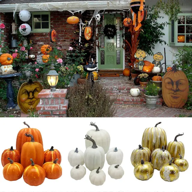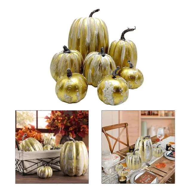 7Pcs Umetne buče Dekoracija doma z velikimi zlatimi bučami iz pene za žetev Buče Ornament DIY Halloween Craft Yellow