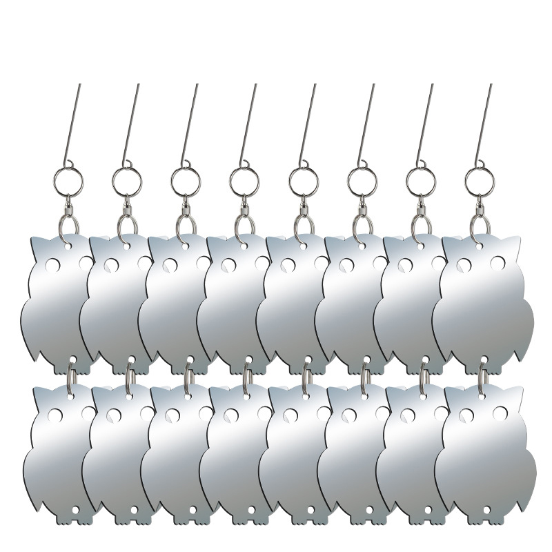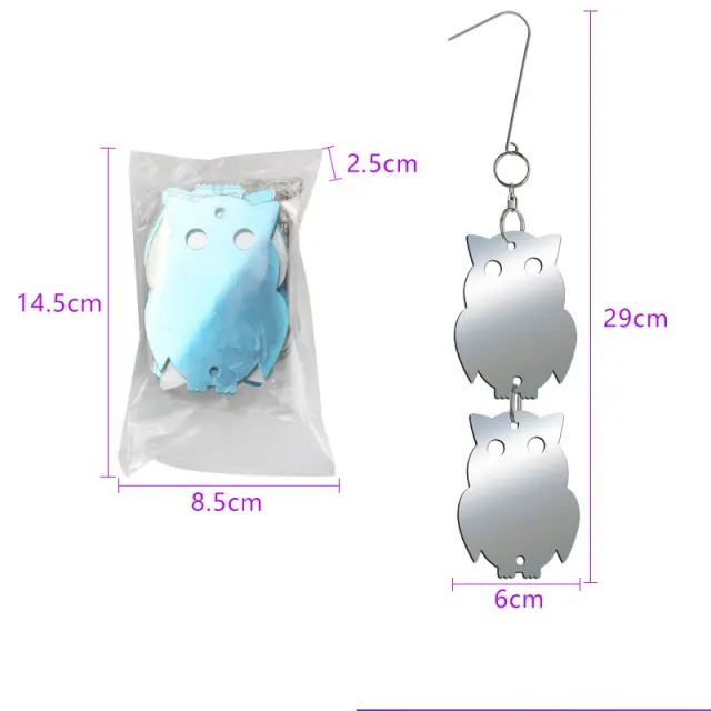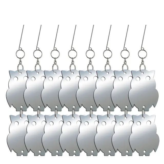 Učinkovito odvračanje ptic: Ta odsevni viseči set za sove je zasnovan za učinkovito odvračanje ptic. Odsevni akrilni material ustvarja svetlobne bliske, ki prestrašijo ptice in ščitijo vaš vrt ali posest pred nezaželenimi ptičjimi obiskovalci.