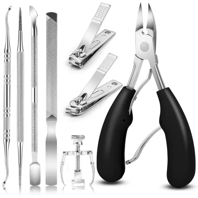 8-delni komplet ščipalcev za nohte iz nerjavečega jekla za vraščene in debele nohte Black