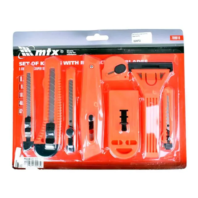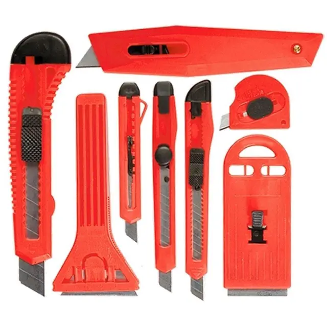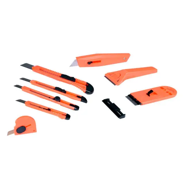 8 delni set PVC Olfa nožev univerzalnih tapetniških je popoln pripomoček za vsakega tapetnika ali ljubitelja projektov. Set vsebuje 8 različnih nož, ki so primerni za različne vrste materialov, kot so tapete, PVC, usnje, tkanine in drugi. Noži so izdelani iz kakovostnih materialov, ki zagotavljajo dolgo življenjsko dobo in zanesljivo delovanje.Set se uporablja za rezanje papirja, kartona in drugih materialov, ki ne zahtevajo velike sile.Priložena so čistilna strgala za odstranjevanje stare barve ali lepila s stekla.8 delni set PVC Olfa nožev univerzalnih tapetniških je primeren za uporabo pri različnih projektih, kot so tapetiranje, izdelava oblačil, popravila doma drugi. Zahvaljujoč svoji vsestranskosti in kakovosti je ta set nepogrešljiv pripomoček za vsakega tapetnika ali ljubitelja projektov.Vrsta: kompletŠtevilo elementov v kompletu: 8Dolžina, mm: 260Širina, mm: 209Višina, mm: 22Noži 9 mm – 3 kosiNoži 18 mm – 2 kosastrgala 40 in 52 mm