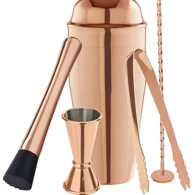 Razširite svoje veščine mešanja koktejlov z našim 8-delni setom za koktejle v darilni škatli z bakreno optiko. Ne glede na to, ali ste začetnik ali izkušen miksolog, ta set zagotavlja vse orodje za impresivne napitke. Natančni merilniki in profesionalni pripomočki zagotavljajo popolne rezultate vsakič.