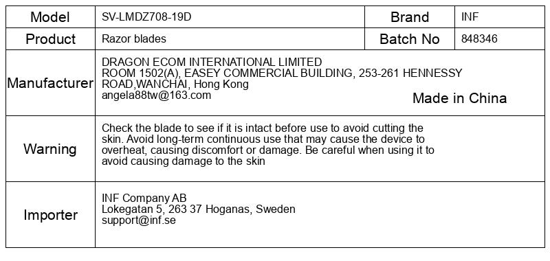 Pred uporabo preverite, ali je rezilo nepoškodovano, da preprečite ureznine kože. Izogibajte se dolgotrajni neprekinjeni uporabi, ki lahko povzroči pregrevanje naprave, kar povzroči nelagodje ali poškodbe. Pri uporabi bodite previdni, da ne poškodujete kože