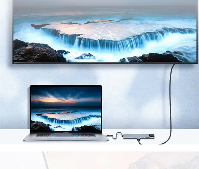 Zvezdišče USB-C z 8 vrati, ki prek ene vtičnice USB-C dodaja številne funkcije. Enostavno povežite pomnilniške kartice, opremo USB, kot so tipkovnice in zunanji trdi diski, monitorje HDMI, polnilnike in omrežne kable prek vtičnice USB-C na prenosniku.