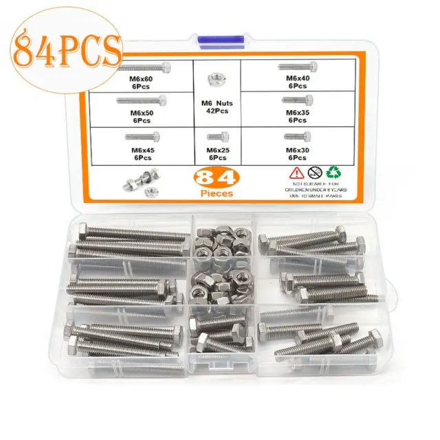 84pcs M6 Komplet Šestrobih Vijakov in Matic - Komplet iz Nerjavečega Jekla