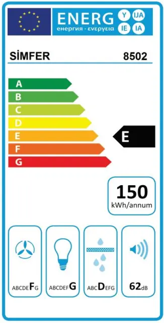 Vgradna izvlečna kuhinjska napa Simfer 8502 se ponaša tremi hitrostmi delovanja, preprostim mehanskim upravljanjem in možnostjo izvleke, kar prinaša večji učinek delovanja. To omogočata filtra, ki s pomočjo maksimalnega pretoka zraka do 460 m³/h poskrbita, da se neprijetne vonjave in para ne razširijo po okolici, medtem ko halogenska osvetlitev prinaša celovit pregled nad kuhalno površino.