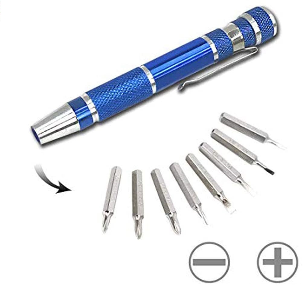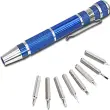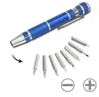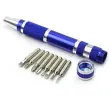 V aluminijastem tulcu so štirje nastavki za izvijač Phillips in štirje navadni nastavki za izvijač.