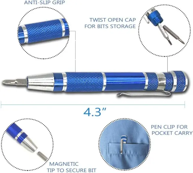 To orodje v velikosti pisala se prilega skoraj povsod. Pripnite ga v žep ali hranite v predalu mize in pripravljen bo, ko ga boste potrebovali.