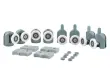 Komplet zgornjih in spodnjih kolesc za tuš kabino s kapami in odbijači. Zgornji valj ima nastavljiv pritrdilni element. Valji so nameščeni na ležajih, primerni so za steklo debeline 4-6 mm in se prilegajo v različne tipe tuš kabin.