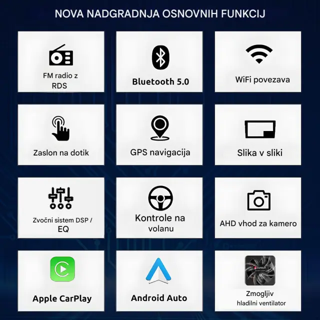Inteligenca in udobje: Funkcija WIFI omogoča avtomobilski napravi povezavo z internetom, kar omogoča bogatejše funkcije, kot sta spletna glasba in spletna navigacija, kar uporabnikom omogoča uživanje v priročnih omrežnih storitvah v avtomobilu. Poleg tega je postopek namestitve te multimedijske avtomobilske naprave relativno preprost in ga lahko profesionalni monterji običajno hitro opravijo, ne da bi pri tem poškodovali originalne linije in strukture vozila. Je plug-and-play, priročen in hiter.