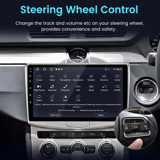 Multimedijski sistem v vozilu lahko preprosto upravljate s kontrolnimi gumbi na volanu, ne da bi vam bilo treba spustiti roke z volana. Izvaja lahko operacije, kot so nastavitev glasnosti, preklapljanje skladb, sprejemanje in prekinjanje klicev, kar močno izboljša udobje in varnost med vožnjo ter vam omogoča, da se bolj osredotočite na vožnjo.