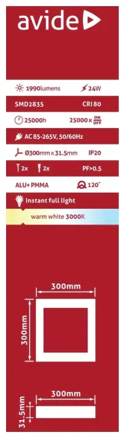 908885 Stropna svetilka LED 24W WW 1990 lm