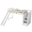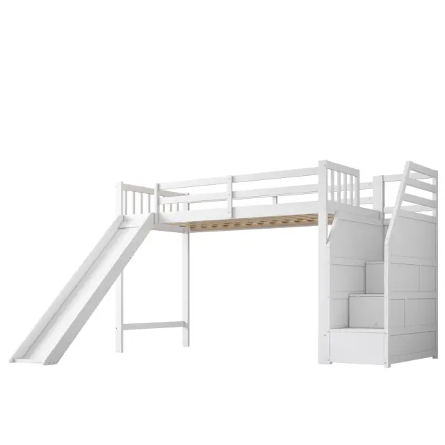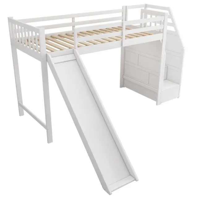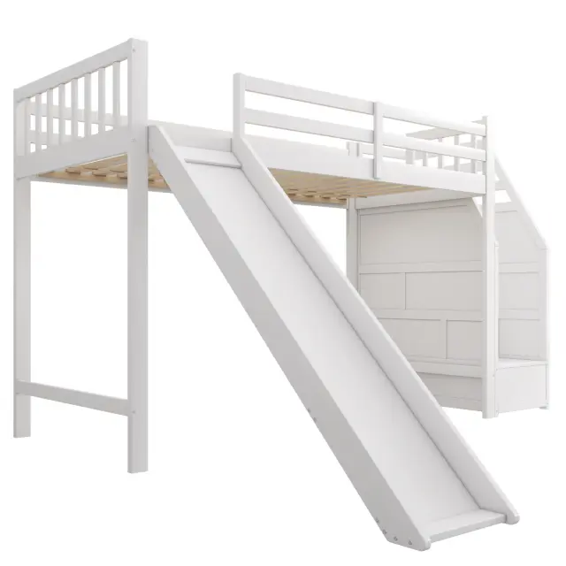 90x200 cm bela podstrešna postelja z drsnikom in lestvijo, certifikat EN747