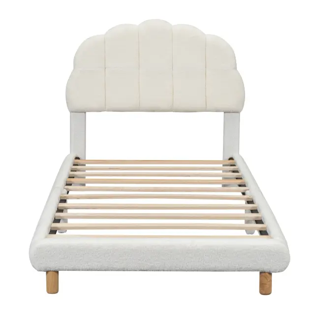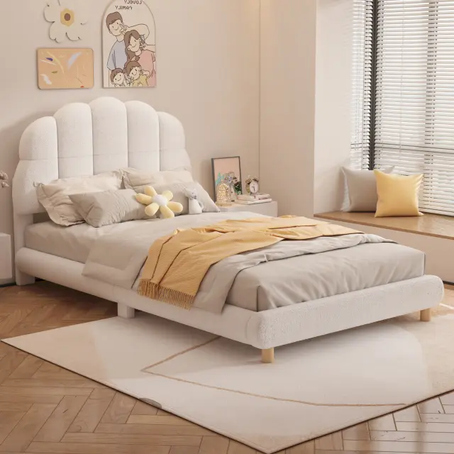 90x200cm Ploska postelja, Otroška postelja, Plišasta, Luštno vzglavje, Bela