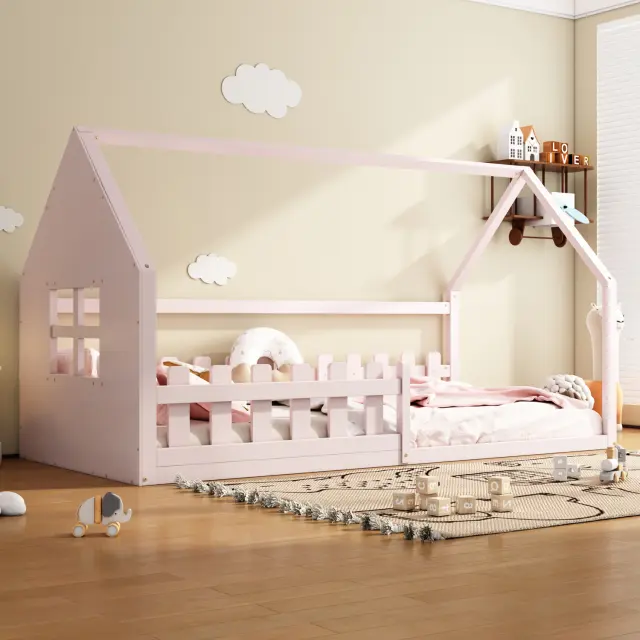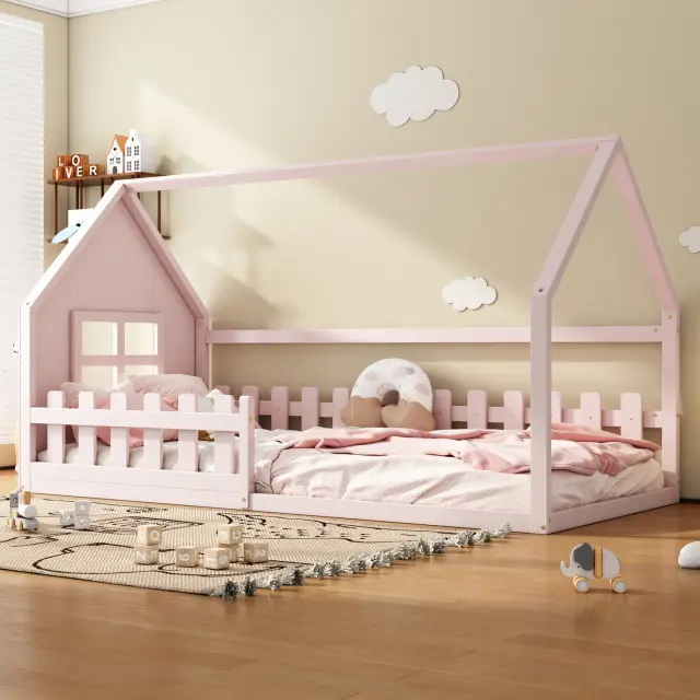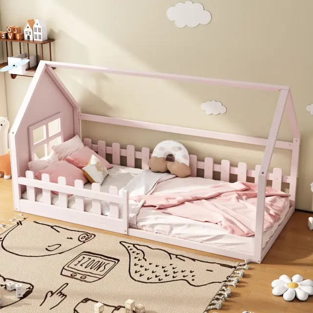 90x200cm Ploska postelja, Otroška postelja, Postelja za hišo, Roza
