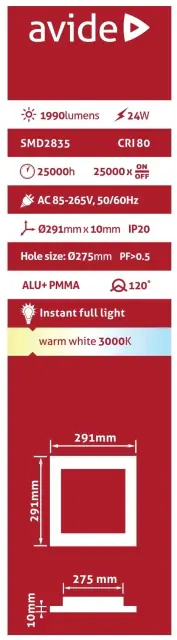 913100 Vgradna stropna svetilka LED 24W WW 1990 lm