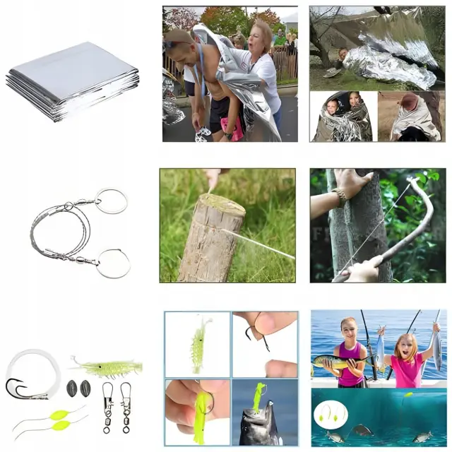 Vsebuje ribiško vrvico, trnke, vabe, grezila in plovce – omogoča učinkovit ribolov v pogojih preživetja.