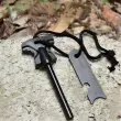 Združuje zaganjalnik ognja, paracord, kompas in piščal. Nepogrešljiv na odpravah preživetja – vedno pri roki.