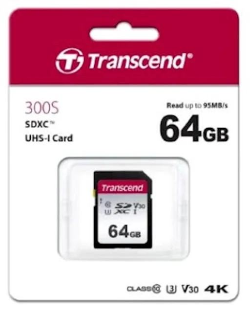 SDXC TRANSCEND 64GB 300S, 95/45MB/s, C10, UHS-I Speed Class 3 (U3), V30