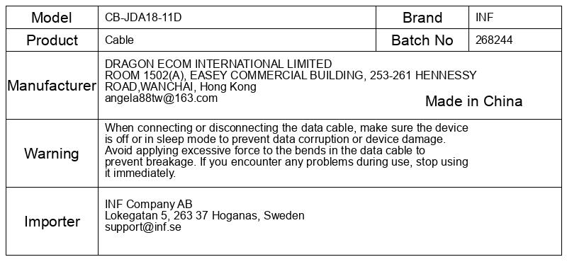 Ko priklapljate ali odklapljate podatkovni kabel, se prepričajte, da je naprava izklopljena ali v načinu spanja, da preprečite poškodbe podatkov ali poškodbe naprave. Izogibajte se prekomerni sili na zavoje podatkovnega kabla, da preprečite zlom. Če med uporabo naletite na težave, ga takoj prenehajte uporabljati.