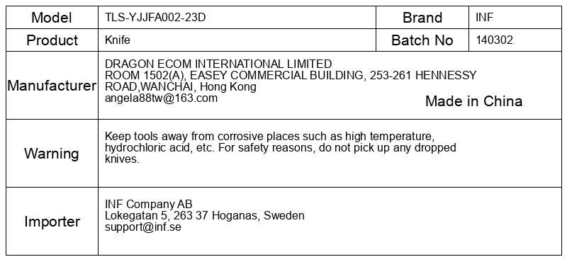 Orodja hranite stran od korozivnih mest, kot so visoke temperature, klorovodikova kislina itd. Iz varnostnih razlogov ne pobirajte nožev, ki so padli.