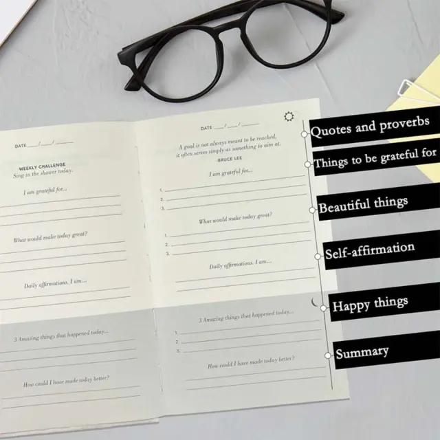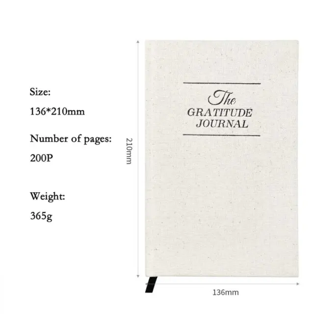 Izboljšana samorefleksija: Ta A5 dnevnik hvaležnosti ponuja prostor za vsakodnevno refleksijo in pozitivno razmišljanje. Vodeni format spodbuja uporabnike, da se osredotočijo na dobre vidike svojega življenja, kar spodbuja občutek hvaležnosti in dobrega počutja. Redna uporaba lahko privede do večjega optimizma, zmanjšanja stresa in bolj pozitivnega pogleda na življenje. Dnevnik s svojimi pozivi in strukturirano postavitvijo olajša gojenje navade hvaležnosti, tudi za tiste, ki so novi v pisanju dnevnika. Je odlično orodje za osebno rast in izboljšanje, ki uporabnikom pomaga prepoznati in ceniti blagoslove v svojih vsakdanjih izkušnjah. Platnena trda vezava doda pridih elegance, zaradi česar ga je užitek uporabljati in razstavljati.