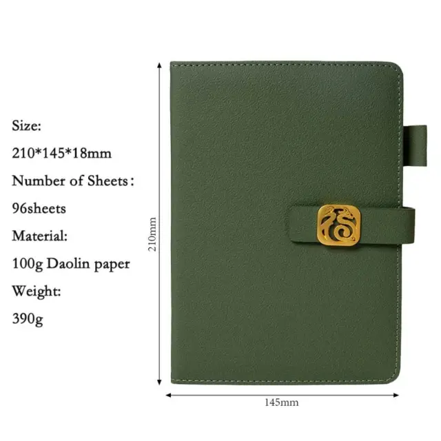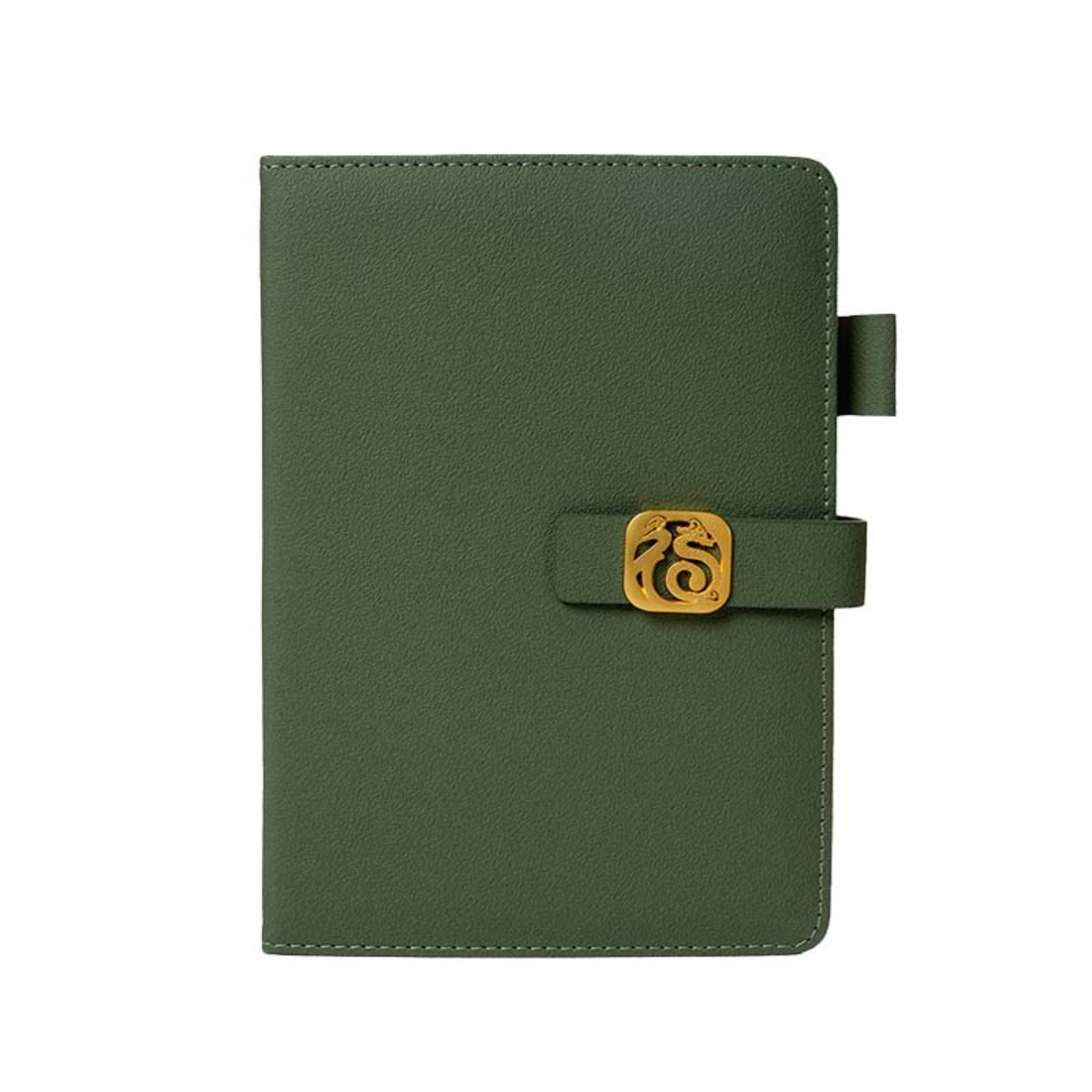 A5 Zadebeljen Beležnica iz PU Usnja z Magnetno Zaponko in Držalom za Pisalo Green