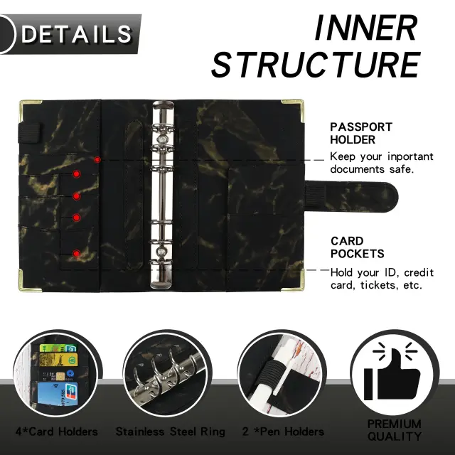 A6 mapa z obročki in planerjem proračunskih listov Black