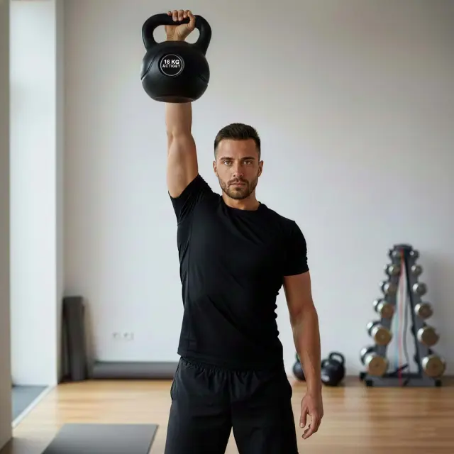 Vzdržljiv 16 kg kettlebell z ergonomskim ročajem. 16 kg ABS kettlebell vam bo omogočil kombiniranje vadbe moči s kardio vadbo. Ta naprava vam omogoča, da povečate intenzivnost vadbe in tako dosežete boljše rezultate v krajšem času. Kettlebell ima udoben ročaj, ki ga lahko dobro držite z eno ali dvema rokama, odvisno od vaje. Kettlebell je izdelan iz najkakovostnejših materialov, ki vam omogočajo dolgotrajno uporabo žoge. Podnožje je izdelano iz zelo odpornega materiala in ščiti opremo in tla pred udarci. Začnite z vadbo kettlebell še danes, da povečate mišično moč, naredite svoje telo bolj prožno in svojo postavo še lepšo. Po vadbi lahko kettlebell enostavno očistite z vlažno krpo. Kettlebell 16 kg za srednje in napredne uporabnike. Kettlebell 16 kg je oprema za funkcionalno vadbo, namenjena ljudem, ki želijo povečati intenzivnost vadbe in delati na moči celotnega telesa. Notranje oblazinjenje zagotavlja ustrezno stabilnost med gibanjem, kar olajša nadzor nad vadbo in pravilno tehniko. 16 kg kettlebell je popoln za funkcionalno vadbo, vadbo moči, intervalno vadbo in splošne razvojne vaje. Omogoča vam izvajanje širokega spektra gibov, kot so zamahi, počepi, mrtvi dvigi, izpadni koraki in stabilizacijske vaje. Redna vadba s to obremenitvijo pomaga krepiti mišice, izboljšati dinamiko in povečati vzdržljivost. Izdelek je namenjen srednje in naprednim ljudem, ki želijo popestriti svoj načrt usposabljanja. Je univerzalna izbira za domače telovadnice in profesionalne vadbene prostore, osredotočena na učinkovitost in dolgotrajno uporabo.