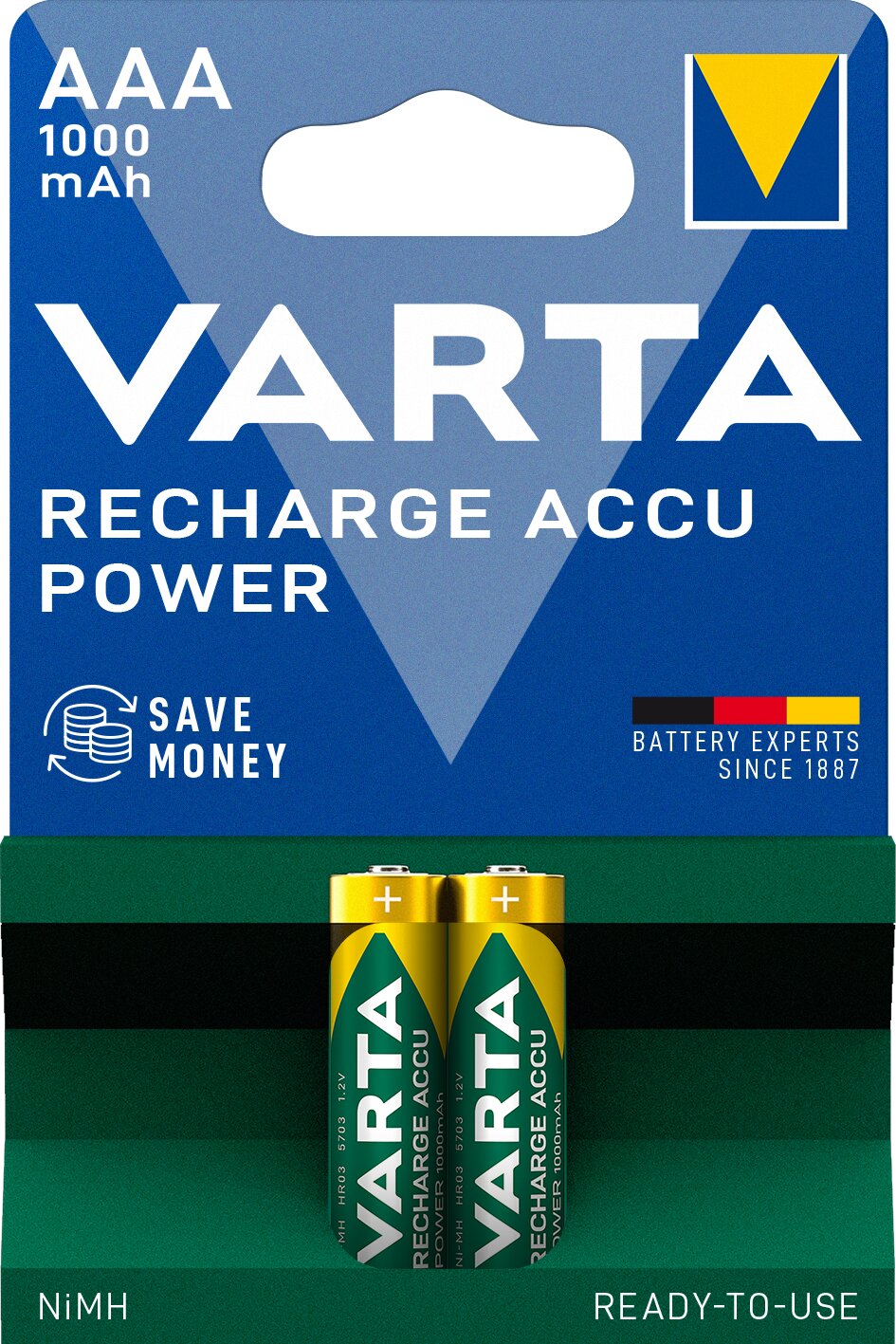 Baterija VARTA Recharge Accu Power AAA s kapaciteto 1000 mAh je "pripravljena za uporabo" neposredno iz embalaže in je najboljša izbira za aplikacije z visoko porabo energije ter za standardne in pametne naprave. Zelo nizko samopraznjenje in brez spominskega učinka zagotavljata vzdržljivost in dolgo življenjsko dobo.
