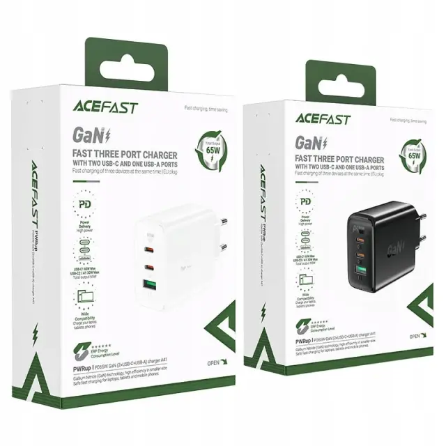 Polnite do 3 naprave hkrati in prihranite čas. Polnilec Acefast A41 je opremljen s 3 vhodi (2x USB-C, 1x USB-A) in podpira različne standarde hitrega polnjenja. Zagotavlja do 65 W moči in zaradi tehnologije GaN zagotavlja stabilno, zanesljivo in varno delovanje. Izdelek je tudi zelo lahek in priročen.