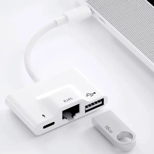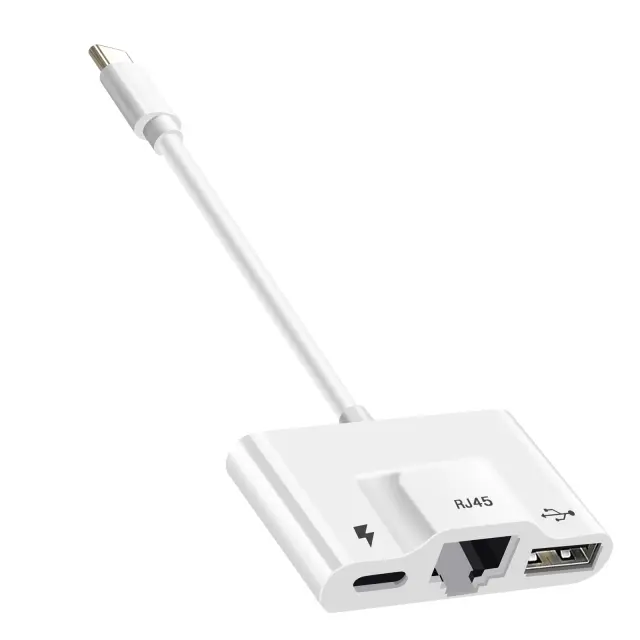 3 v 1 USB C adapter za razširitev povezljivosti vaše naprave. Ima vrata Ethernet in USB za povezavo vaše naprave z internetom in uporabo naprav USB. Njegova ženska vrata USB-C omogocajo socasno polnjenje.