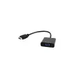 Kompakten adapter HDMI na VGA. Pretvori digitalni HDMI vhod v analogni VGA izhod + 3,5 mm audio. Podpora široke pasovne širine do 1920x1080@60Hz, združljiva s HDMI v.1.4. Ločljivost izhodnega video signala ostaja enaka ločljivosti vhodnega video signala.