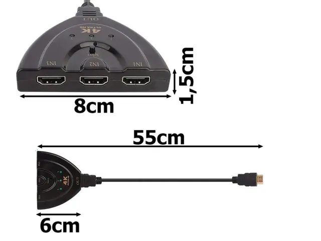 Adapter HDMI splitter razdelilec 3 kanali 4K 50cm je popolnoma združljiv z vsemi napravami, ki imajo HDMI izhod, kot so računalniki, igralne konzole, DVD predvajalniki in še več. Podpira visoko ločljivost 4K, kar pomeni, da boste lahko uživali v izjemno jasnih in podrobnih slikah na vseh povezanih zaslonih.