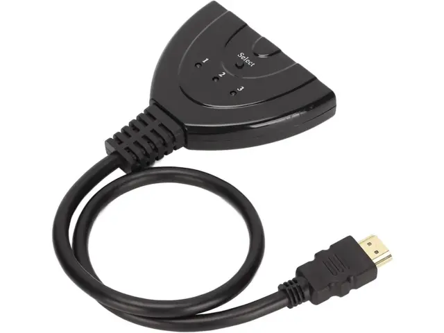 Sodobno signalno stikalo, ki bo revolucioniralo način uporabe več naprav v vašem kompletu za zabavo. Naše stikalo omogoča povezavo do treh različnih naprav, kot so računalnik, prenosnik, DVD predvajalnik, igralna konzola ali digitalni dekoder, na en sprejemnik, kot je TV ali monitor.